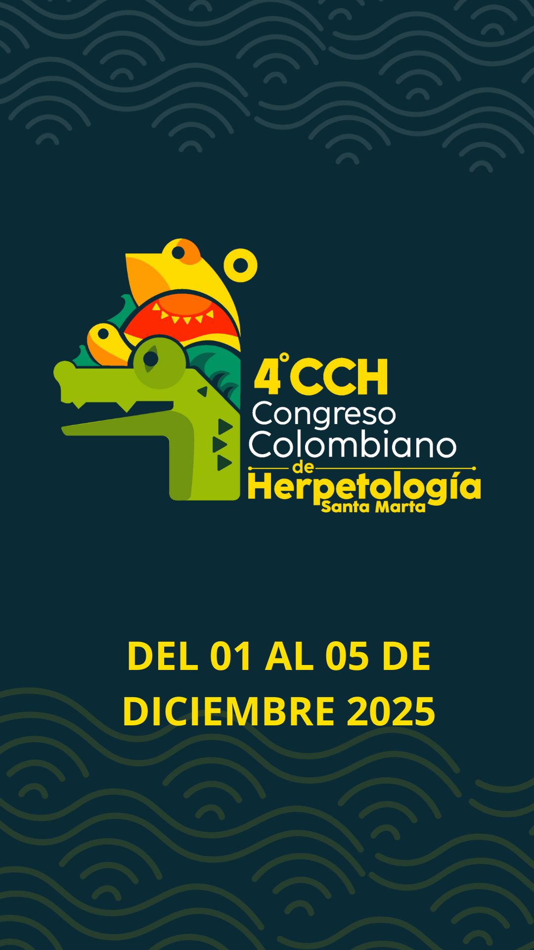 ¡Bienvenidos al Cuarto Congreso Colombiano de Herpetología (4° CCH)! La Asociación Colombiana de Herpetología y sus organizaciones aliadas, Universidad del Magdalena, Cotelco Magdalena | Gremio Hotelero y Turístico de Santa Marta, Wild Conservation Society (WCS), Colombia y el Zoológico de Zúrich, extienden una cordial invitación a toda la comunidad científica y entusiastas de los anfibios y reptiles. Del 1 al 5 de diciembre de 2025, Santa Marta, el Distrito Turístico, Cultural e Histórico de Colombia, será el escenario de este importante evento, coincidiendo con la conmemoración de sus 500 años de historia. En este evento exploraremos el papel crucial de la herpetofauna en la biodiversidad global, a través de conferencias, simposios, talleres y actividades culturales. ¡Únete a nosotros en este gran evento académico y cultural en la Perla de América!